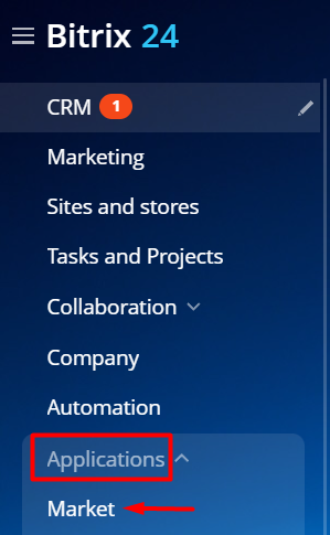 2. In the left menu, select “Applications” – “Market”.