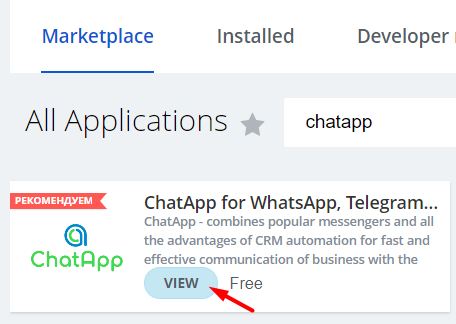 3. Enter “ChatApp” in the search bar, select the application found and click “View”.