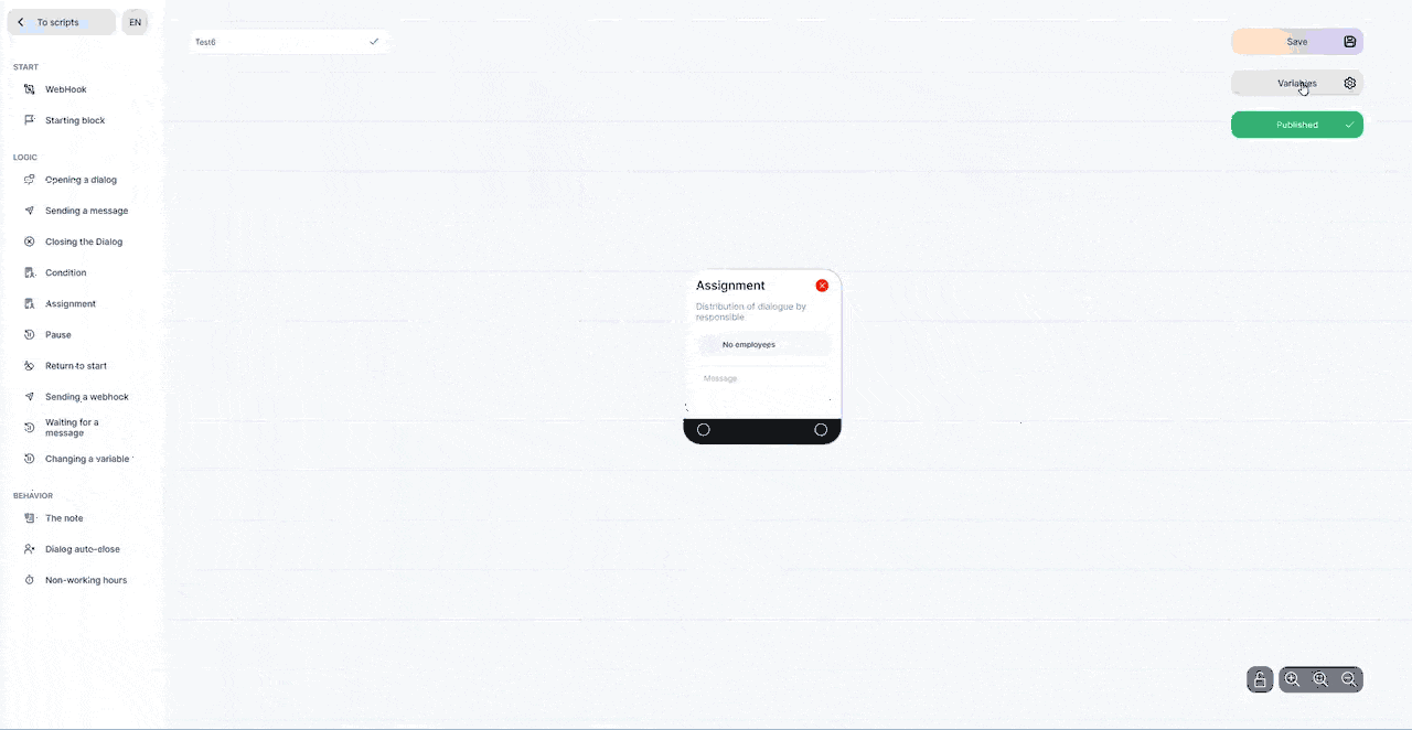6. In the “Variable name” field, enter the name of the employee to whom the dialog will be assigned.