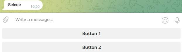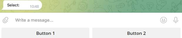 - Buttons cannot be sent together with a file. Because the type of such message is “file”, the system does not recognise the difference between buttons and messages. Therefore, the client will receive plain text in curly braces