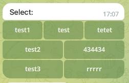 Bots on Telegram and VK are able to display two types of buttons — classic ones, located below the message input line, and inline buttons, displayed in the chat window as message bubbles. To apply the second type of buttons, use the special {{{inline}}} marker.