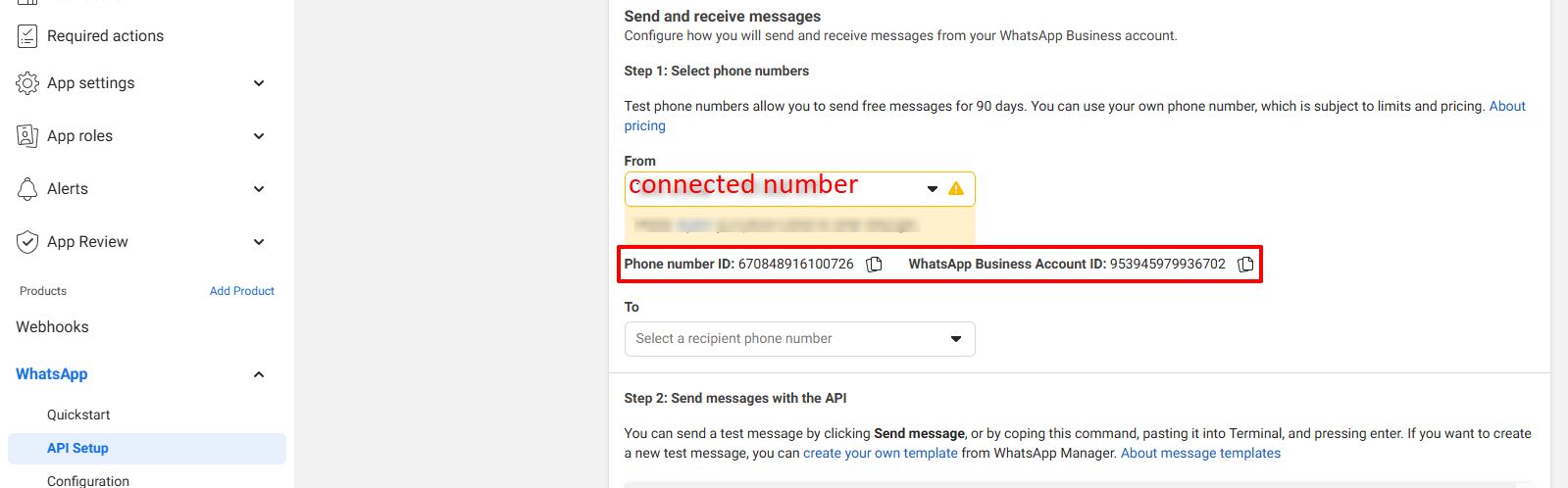 WhatsApp Cloud API connection in a personal account.#