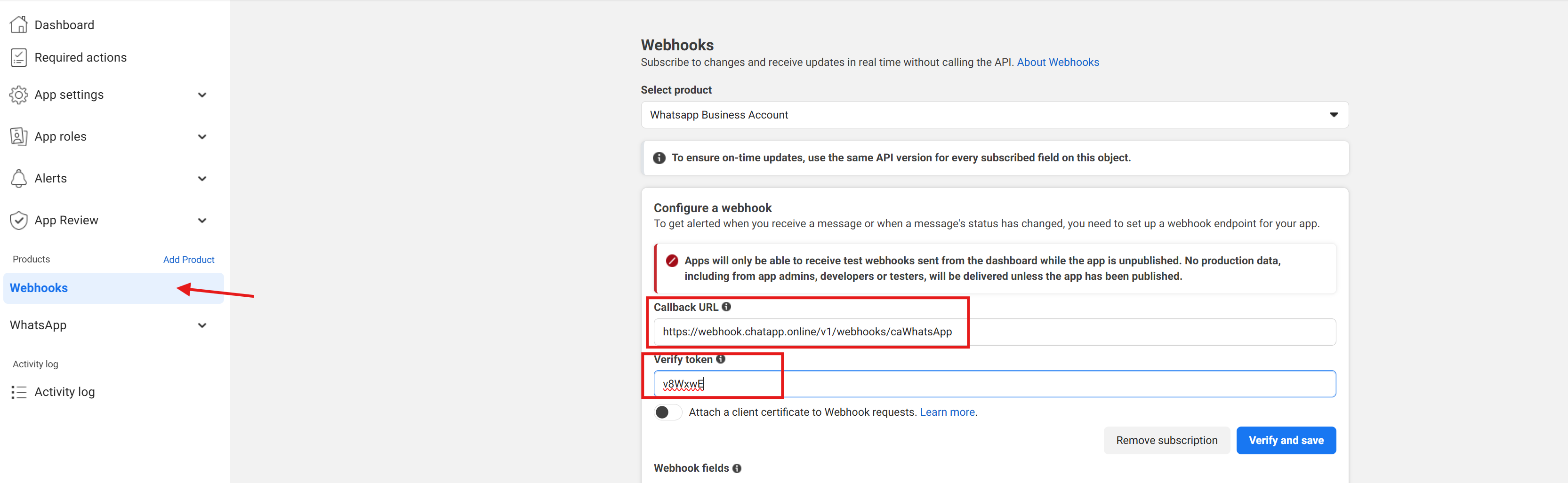 WhatsApp Cloud API connection