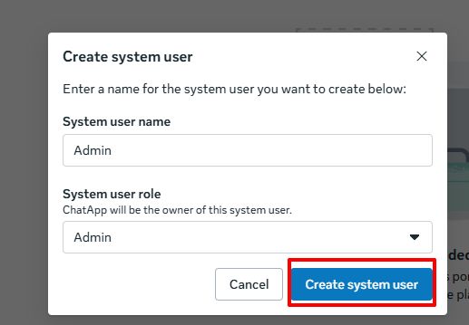 2) Enter the system user name and System user role: Admin. Click Create system user.