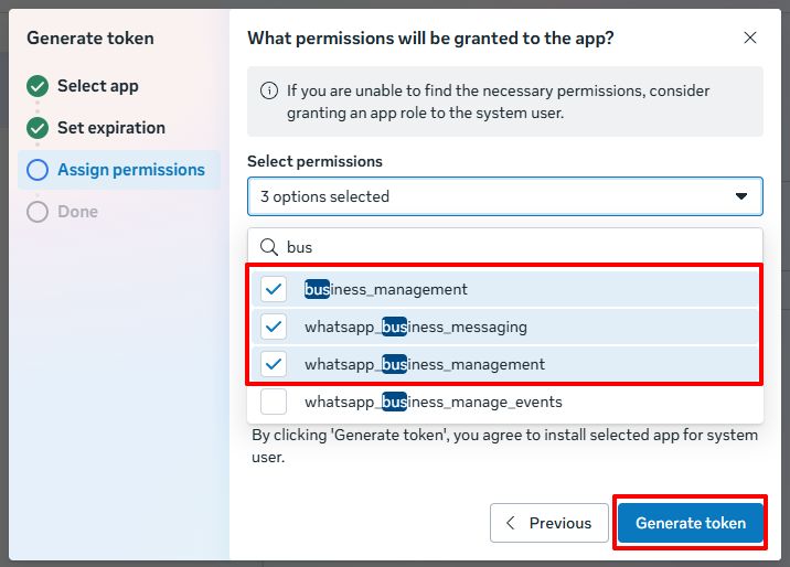 If the System user token generated during the initial connection of the number is lost, you must contact ChatApp technical support by providing the line identifier (ID) to which the first WhatsApp Cloud API number is linked.