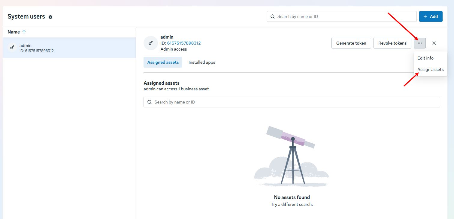 1) Go to the System Users menu, select the system user and click Generate New Token.