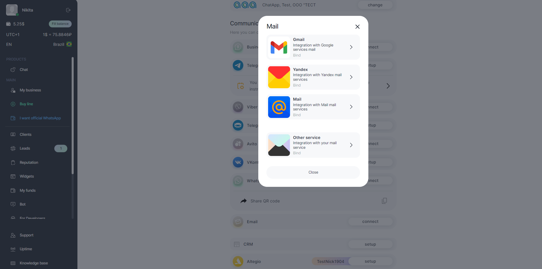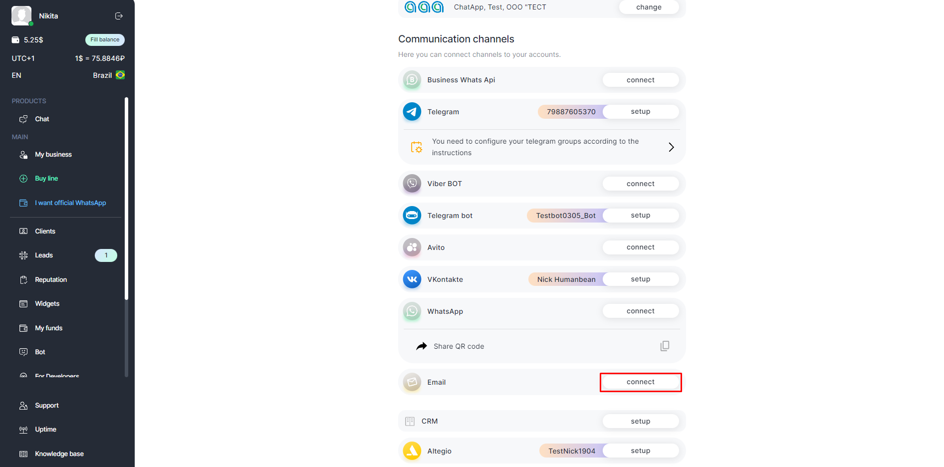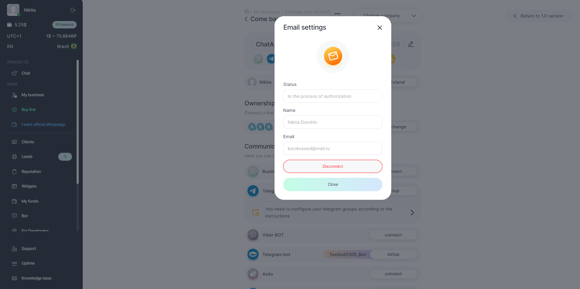 Connection will be displayed in the line in your personal cabinet.