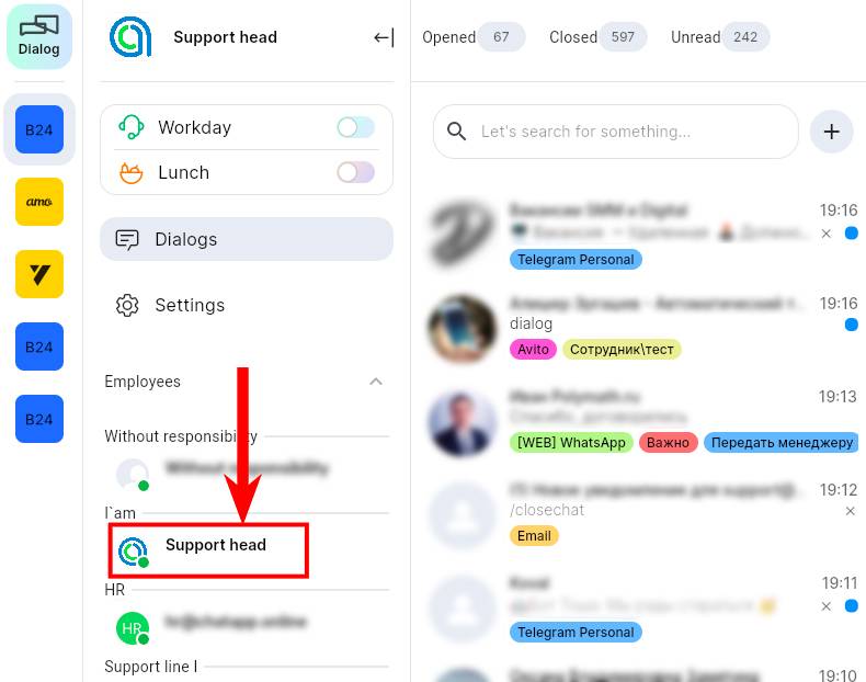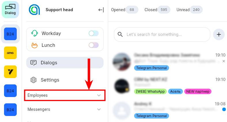 1. In ChatApp Dialog, expand the “Employees” sub-item;