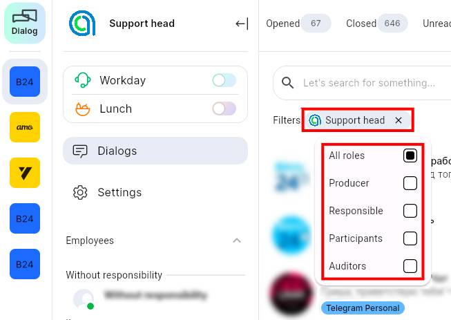 In ChatApp Dialog, you can use role-based filtering. To do this: