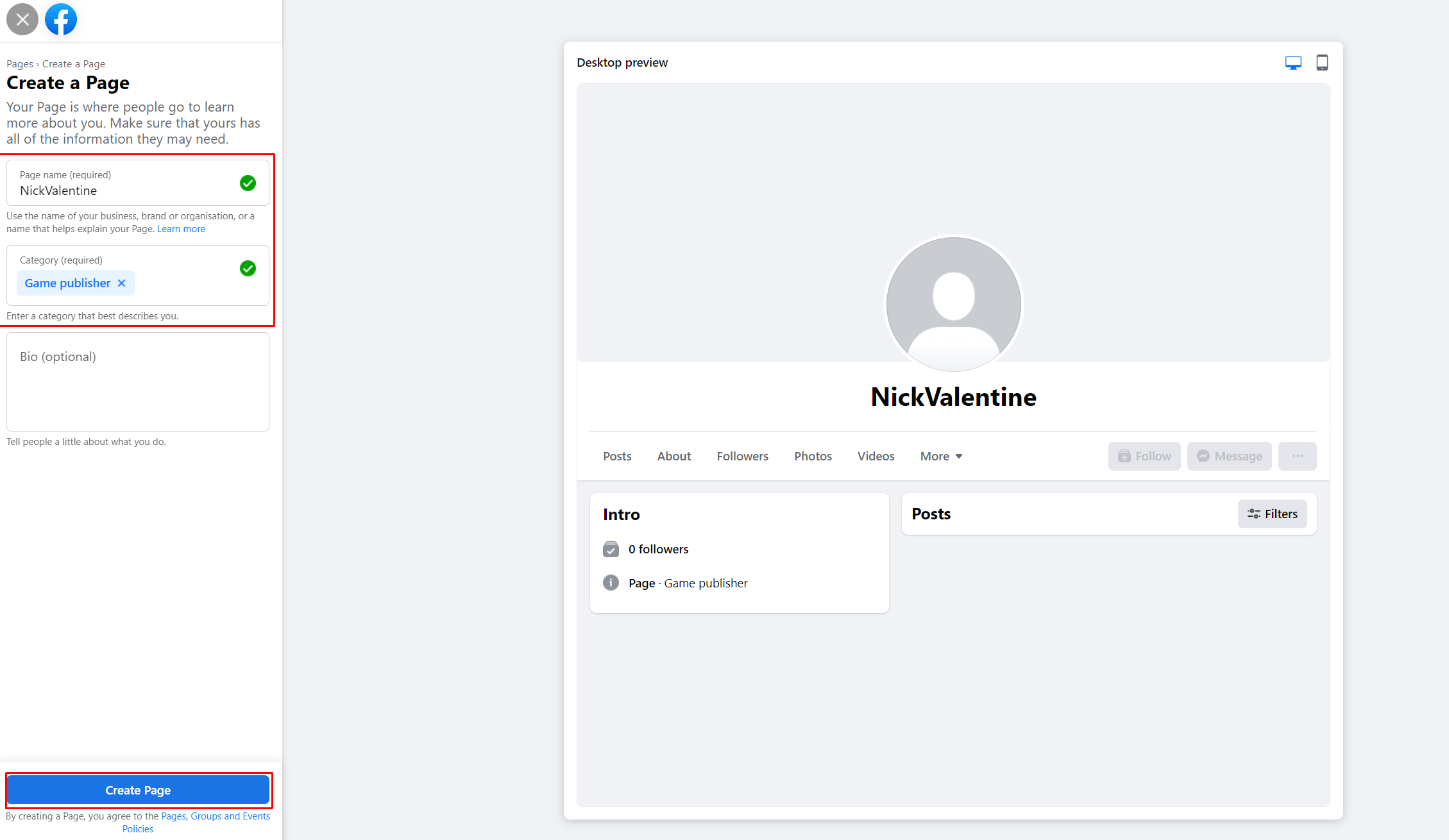 3. Write a page title select a category and click “Create Page”. Click “Next” a few times and then click “Done”. You now have a business page on Facebook.