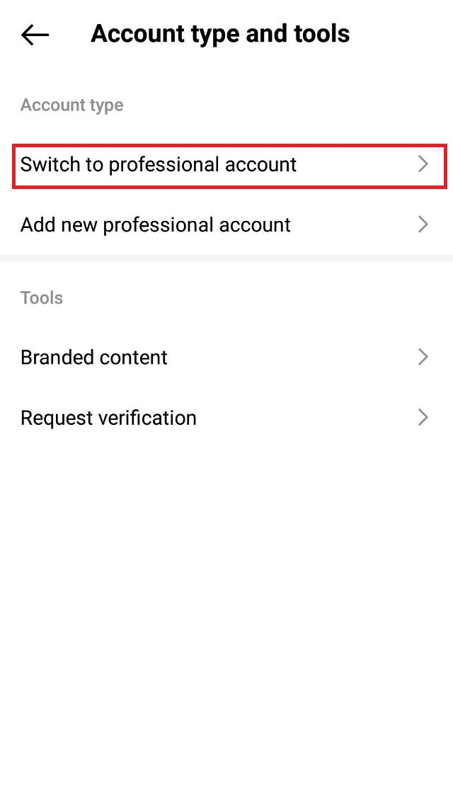4. Select “Switch to professional account”. Click “Continue.”