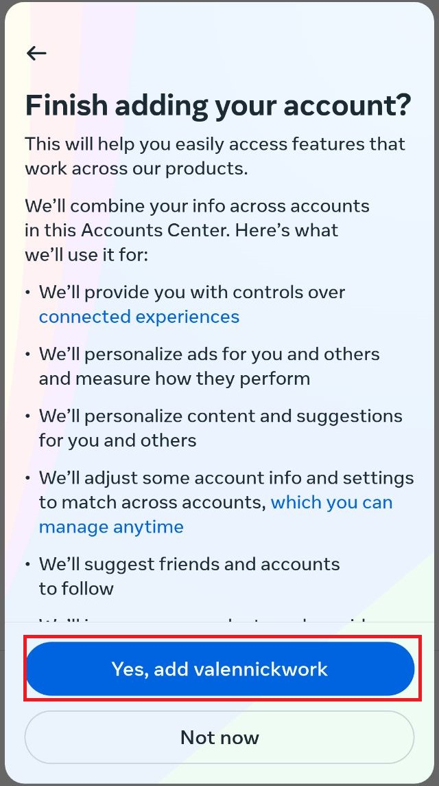 9. On the “Account center settings” page, Click “Next”.