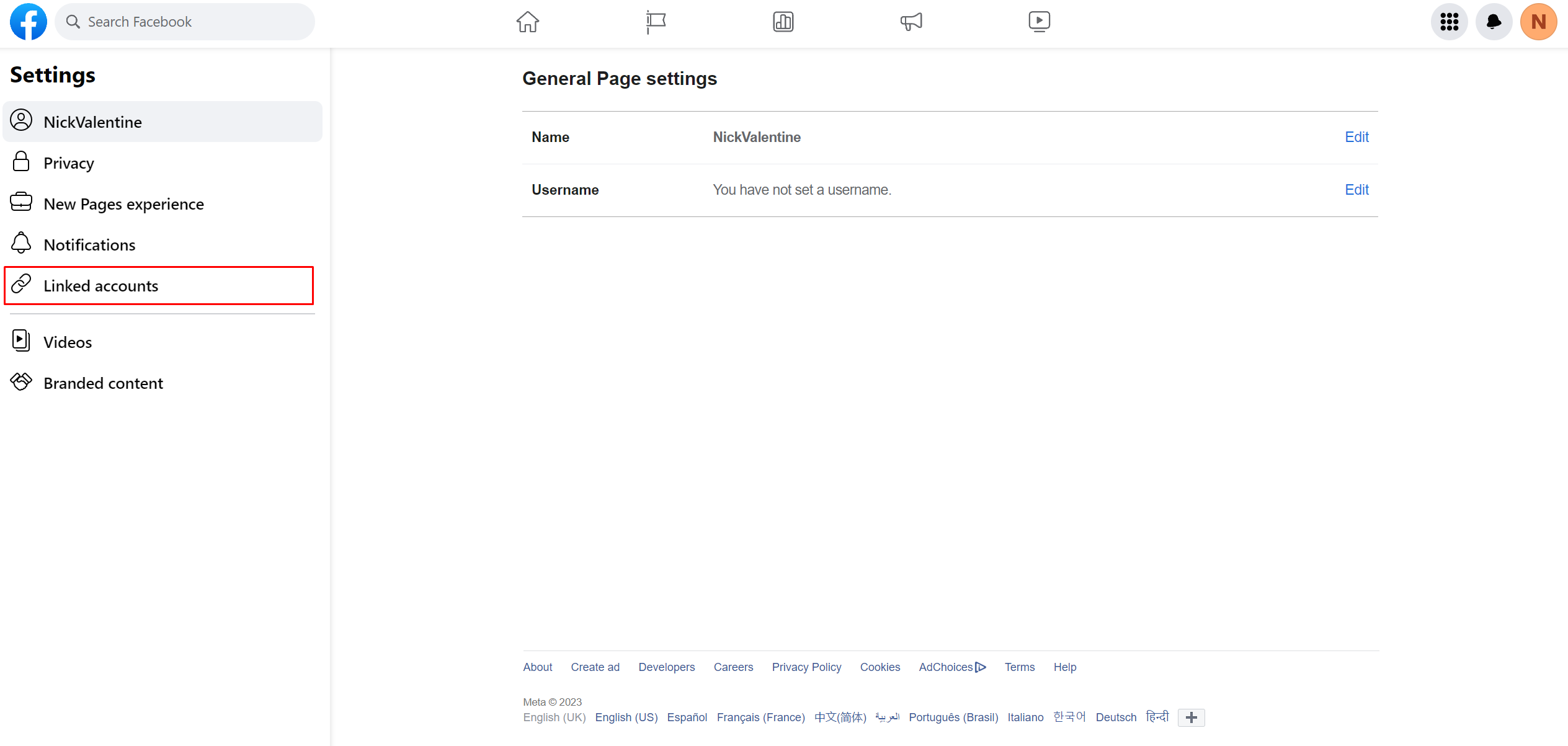 1. Go to “Settings” on the left side of your Facebook business page.