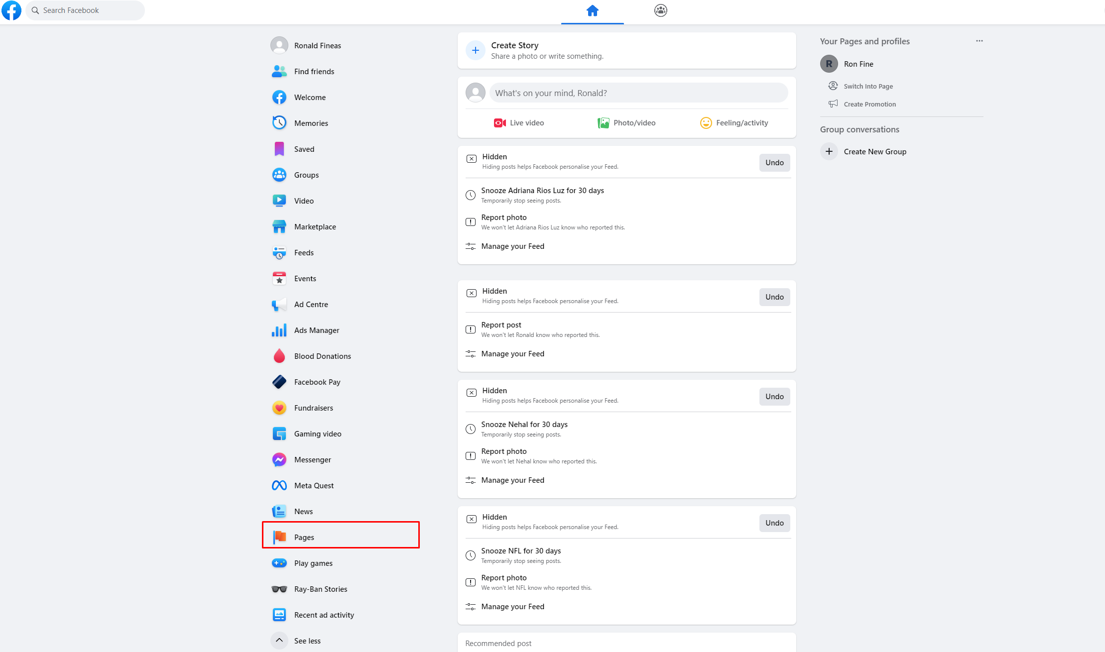 1. Go to the “Pages” section on the left side of your Facebook profile.