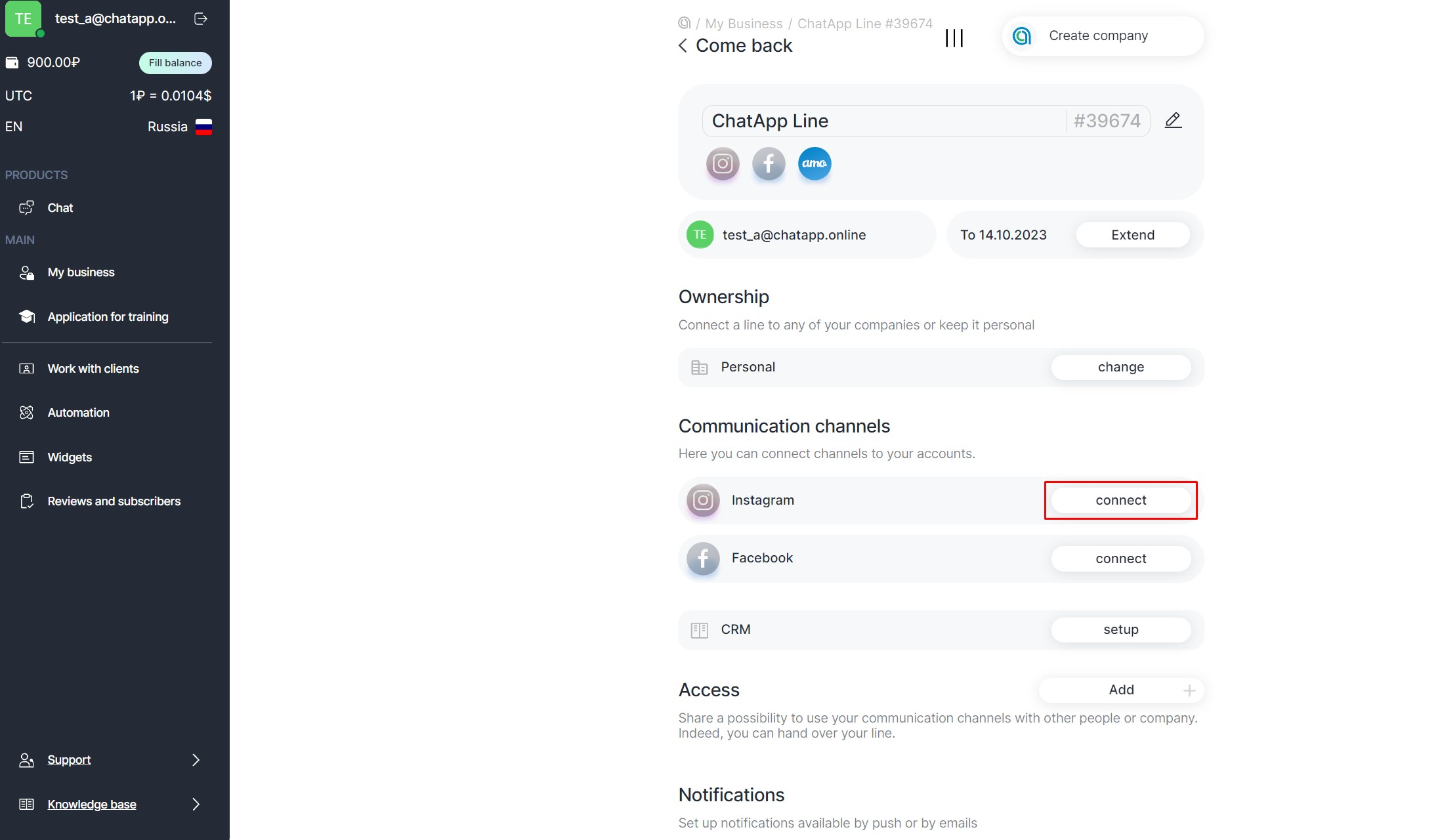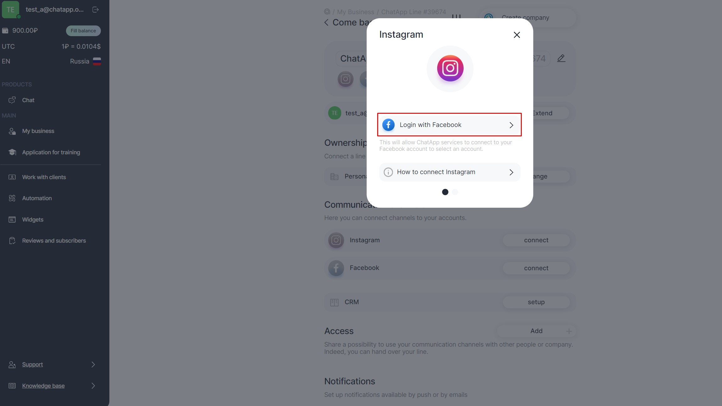Use Instagram* to communicate with clients, private messages and comments will be available in ChatApp Dialog.
