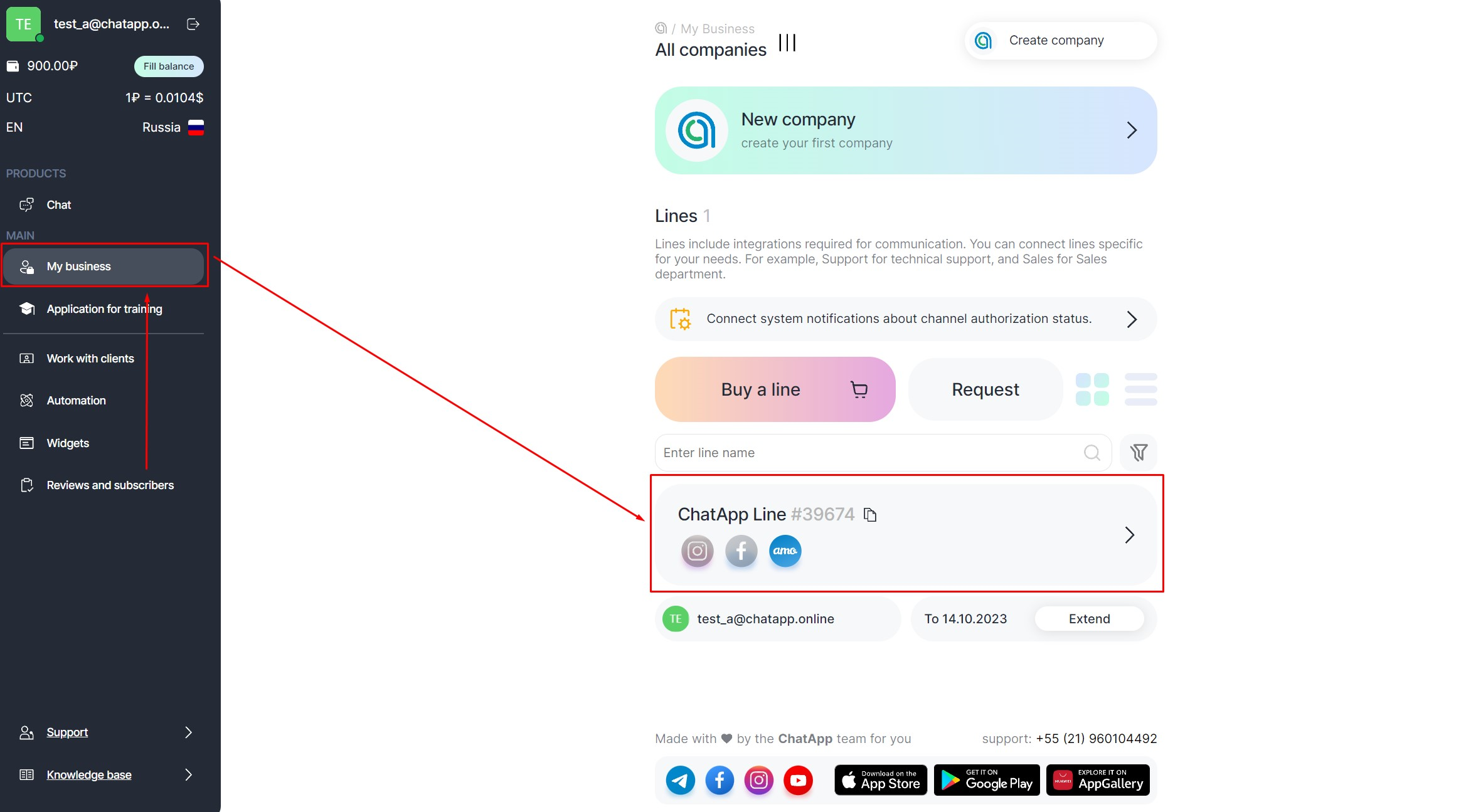2. Select the line with the purchased Instagram* channel.