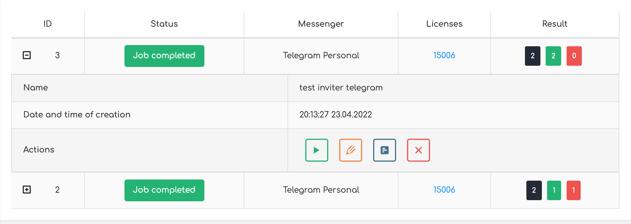 Select the license with which invitations will be sent. If you select several licenses, then each will be sent in turn (1 request per license). You can choose from licenses that have connected Telegram or WhatsApp accounts.