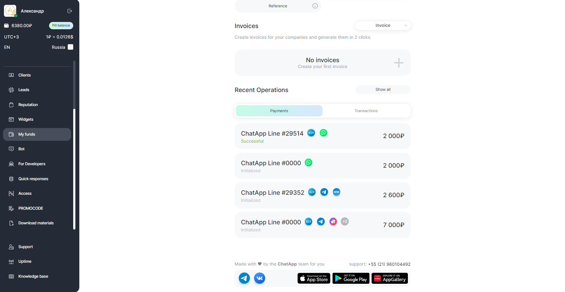 • Go to your ChatApp Dashboard and select the “Balance” section.