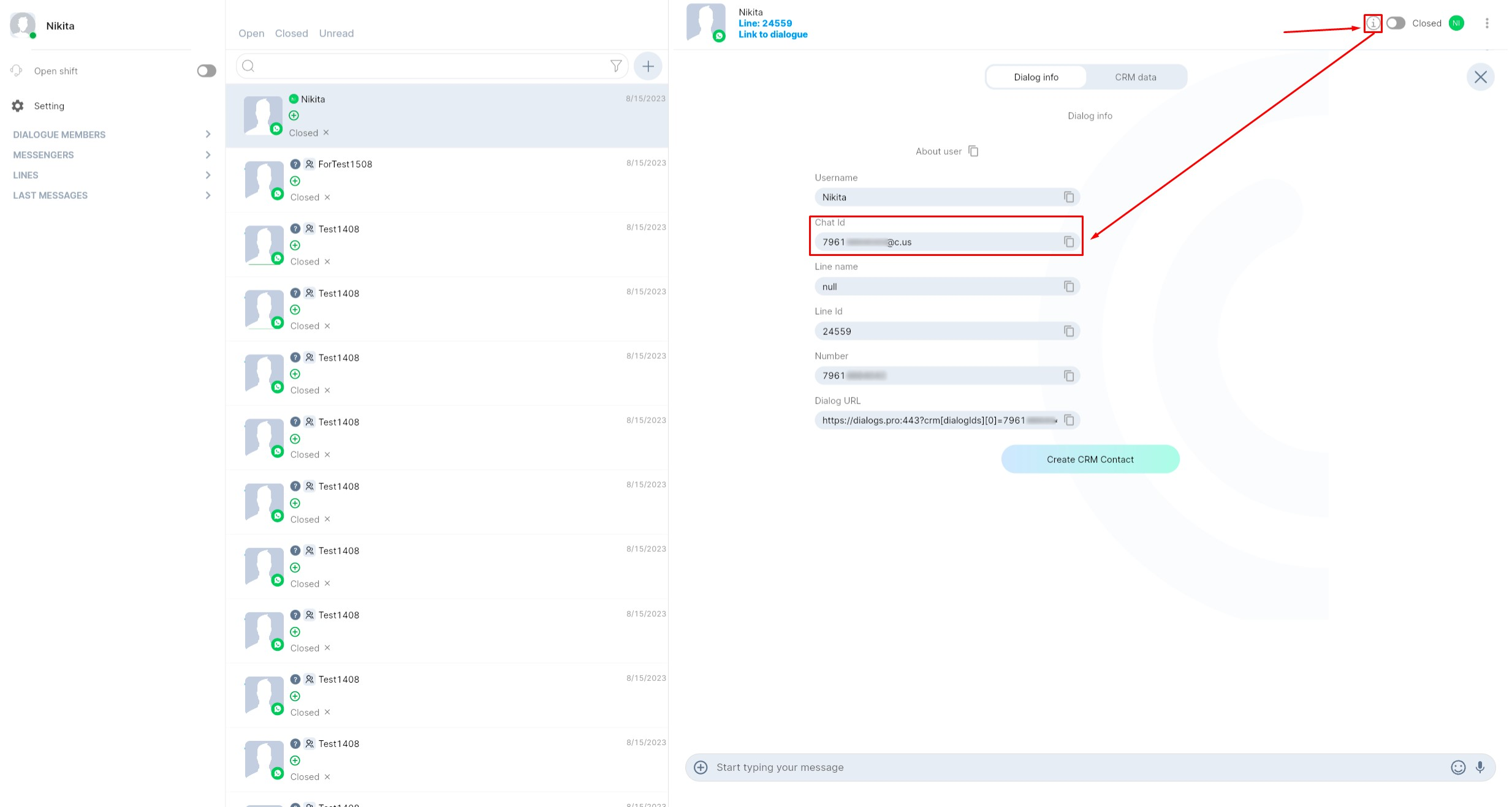 - Specify the chat ID you can find it in ChatApp Dialog;