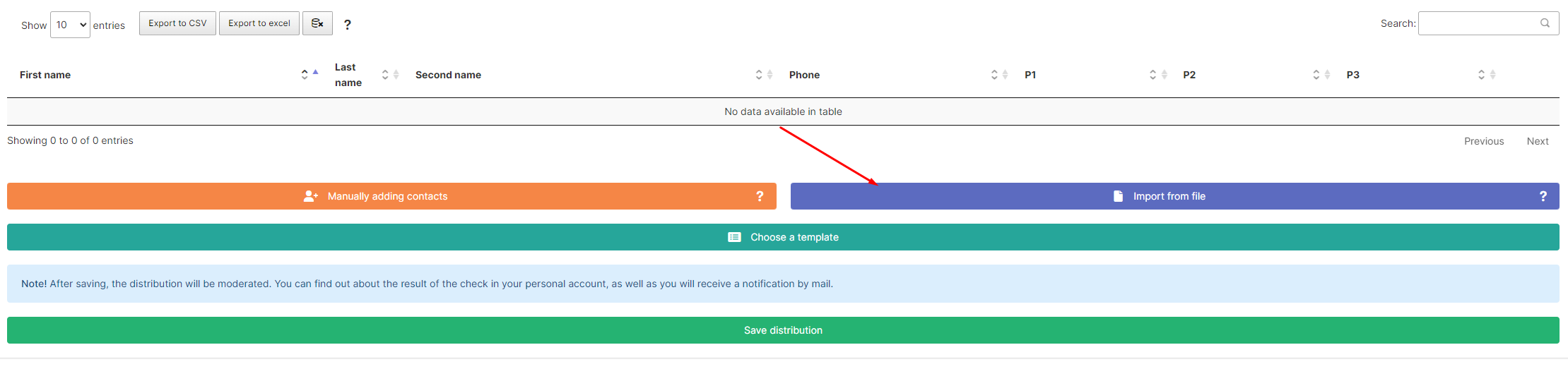 5. Below you need to enter the text of a message which will be sent to the contacts from the distribution list.