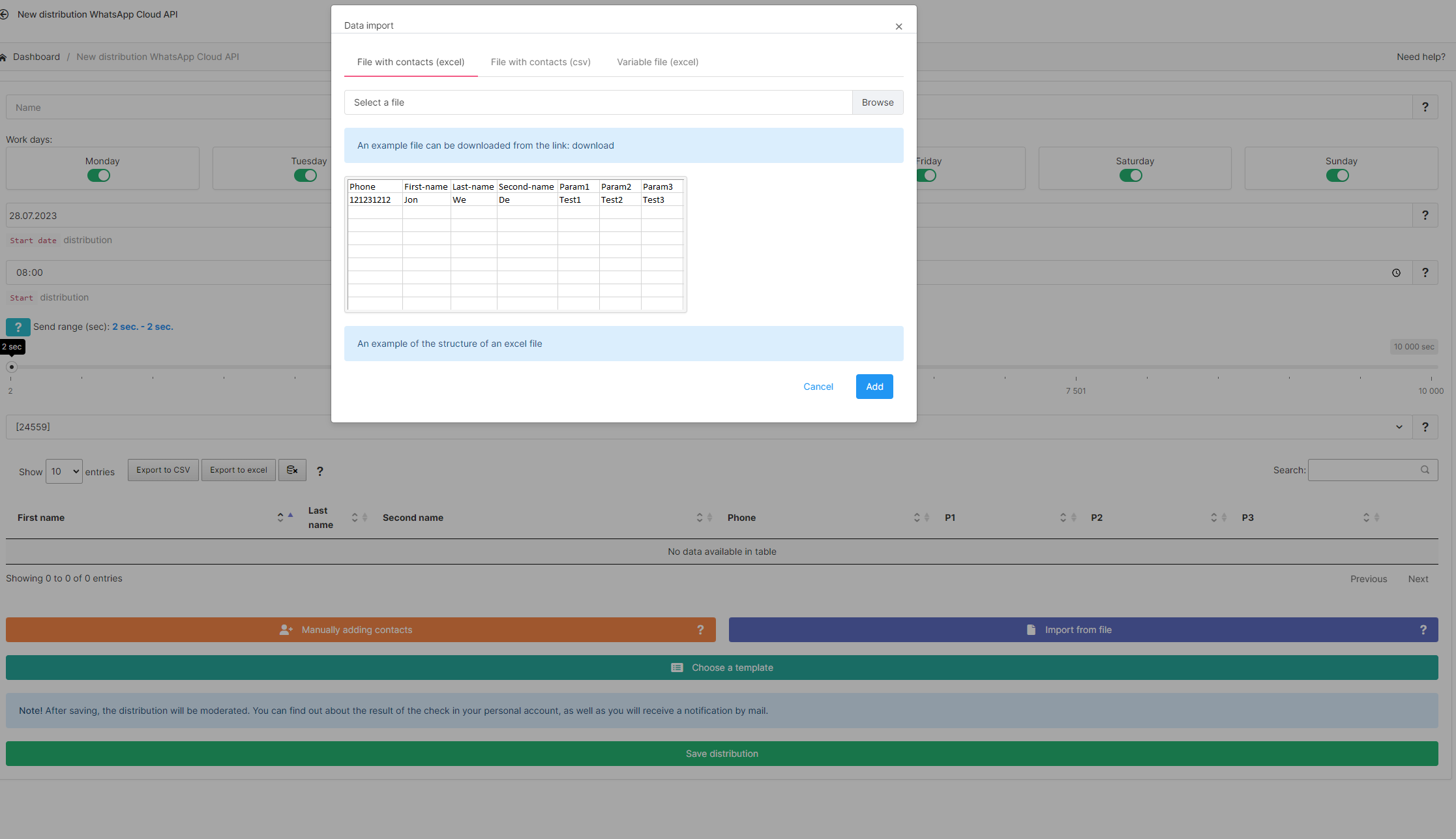 - by adding contacts manually as a phone numbers list or @username