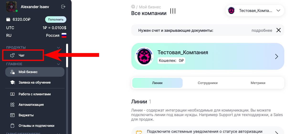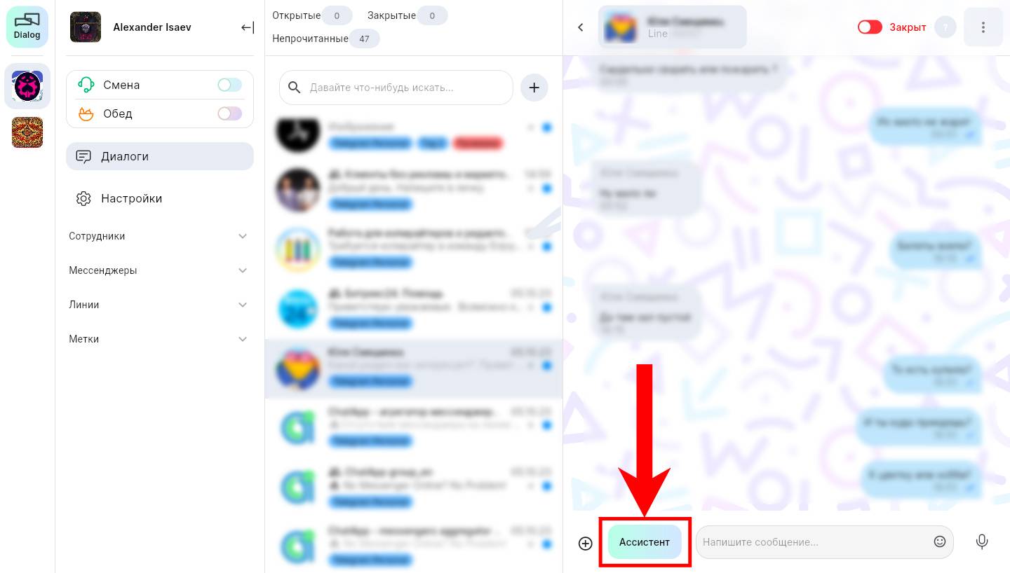 1. Go to Dialogs.pro from your personal account by clicking on the “Chat” button;