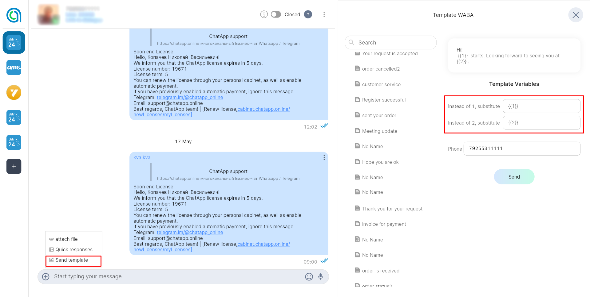 How to send a WhatsApp Business API template from the dialog?