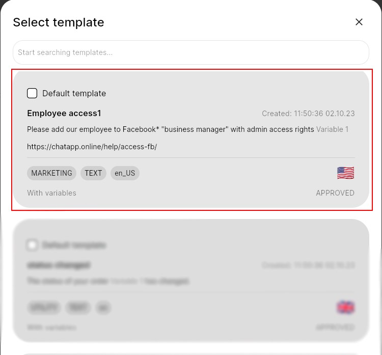 7. Select the desired template. If there are variables present, fill them in. Click “Continue.”