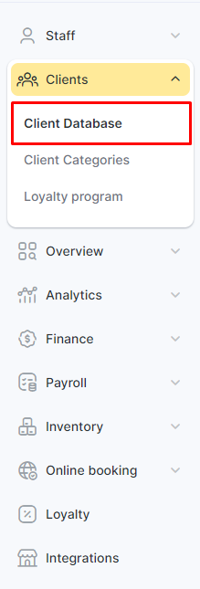 2. Go to the Clients tab in the left side menu and select “Client Base”