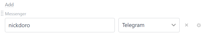 - By @username, if the Telegram messenger is used for communication. Add @username to the Work Phone field.