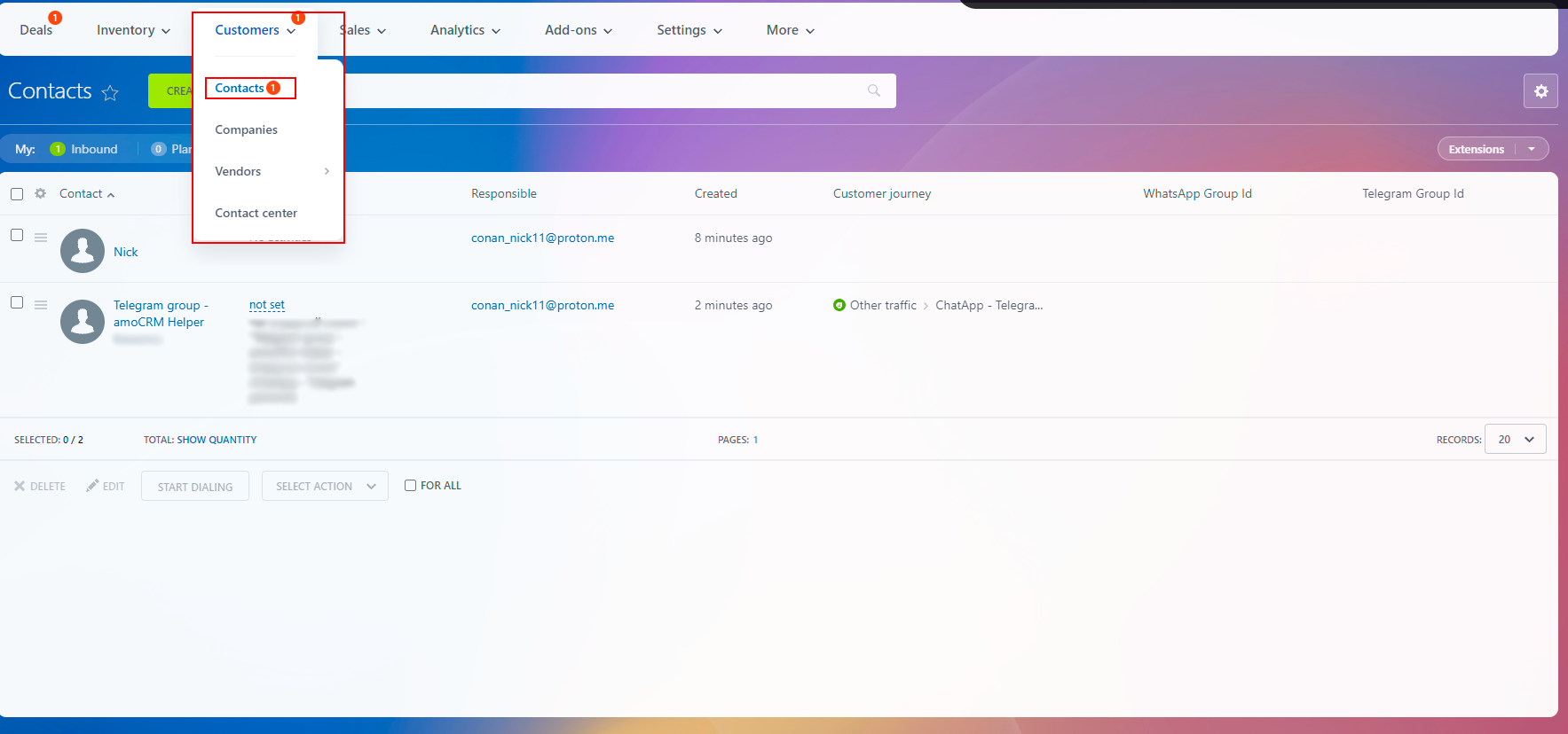 - In the Telegram connector, enable the option “Exclude CRM duplicates” – “For username”.