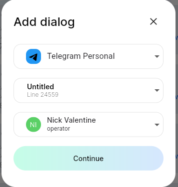 4. In the “Line” field, select the line, and in the “Responsible” field, select the employee to whom the dialog with the user will be attached. Click “Continue”.