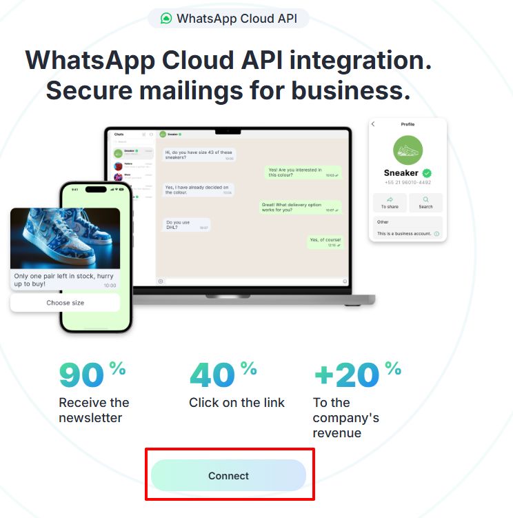 The WhatsApp Business API connection procedure without restrictions takes up to 40 minutes.