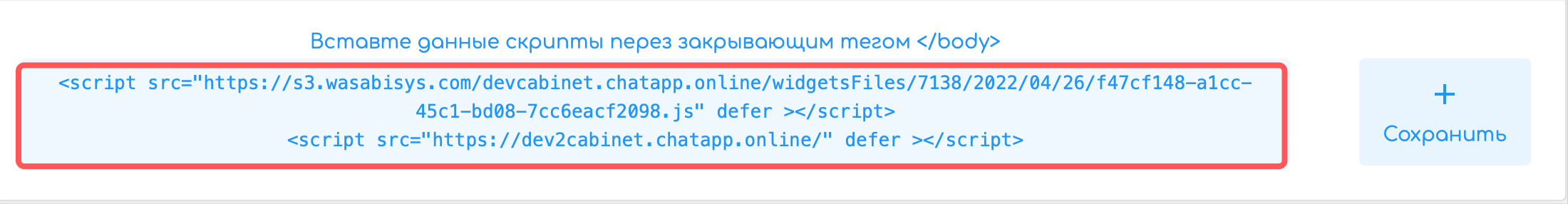 After saving, script data will be displayed in the bottom editing field of the widget, which you need to copy and paste into the page code of your site.