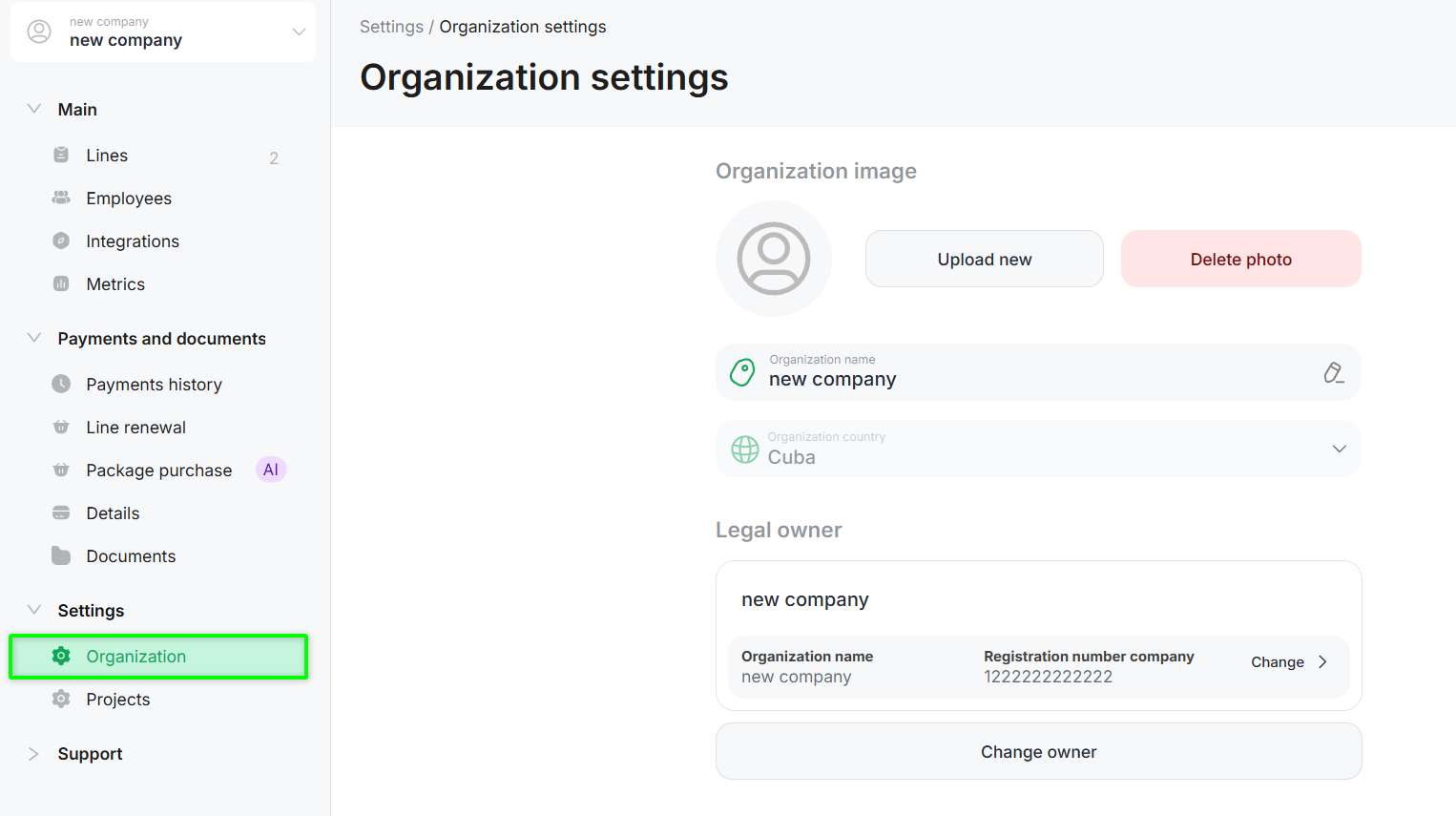To remove a previously set image, click «Delete photo» — the image will be removed from the account.