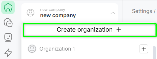 1. In the upper-left corner of the personal account, open the dropdown list of organizations and projects and click «Create organization +».