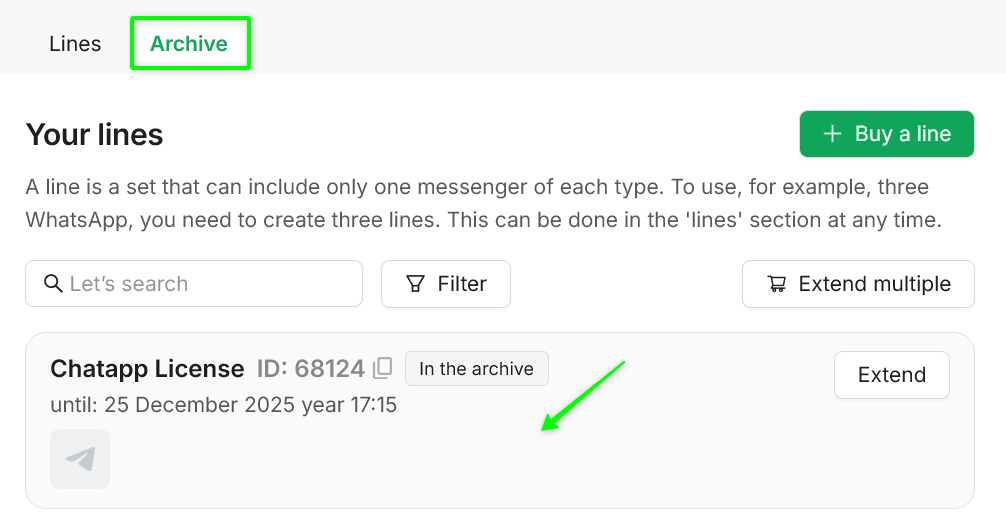 If necessary, you can manually archive a line if it is temporarily not in use and should not appear in the general list.