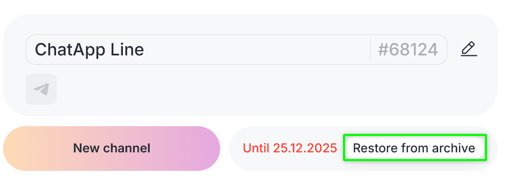 Notifications sent to the messenger include: line expiration, channel status changes (authorization/deauthorization), a 7-day warning before line expiration, and line archiving. For details, see the instructions.