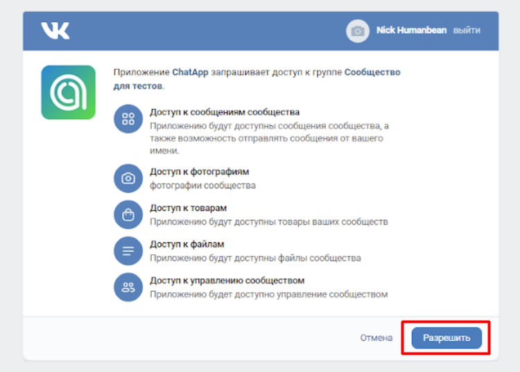 5. Выберите группу и нажмите «Разрешить».