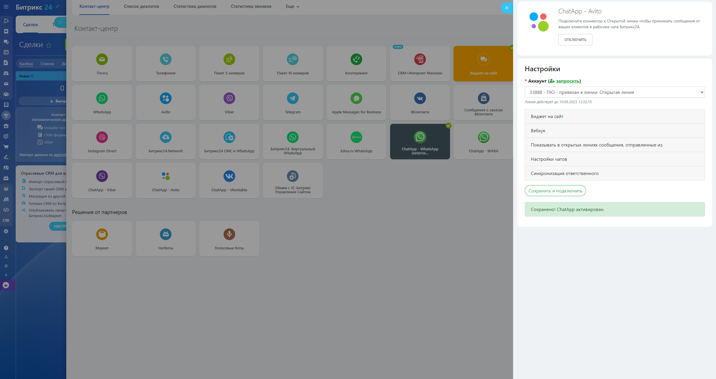 Для начала вам нужно подключить канал Avito в Личном кабинете ChatApp, а затем установить приложение ChatApp на платформе Битрикс24.