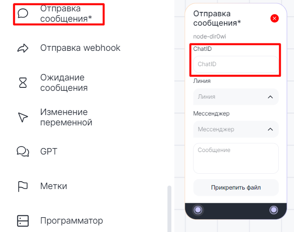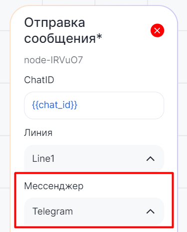 ChatID — номер телефона, username или e-mail адресата, в поле можно ввести переменную.