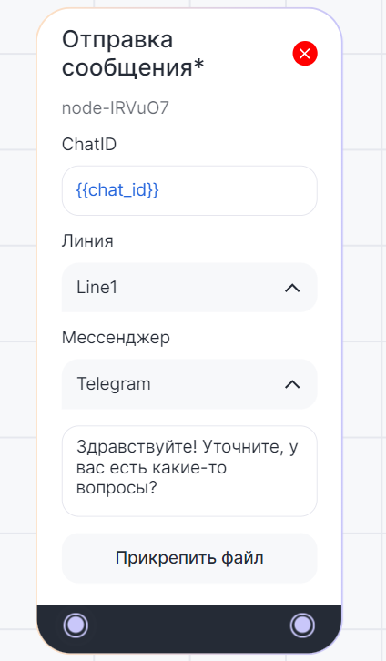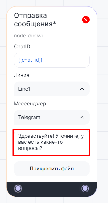 В диалоге бота с клиентом блок «Отправка сообщения*» автоматически отправляет сообщение.