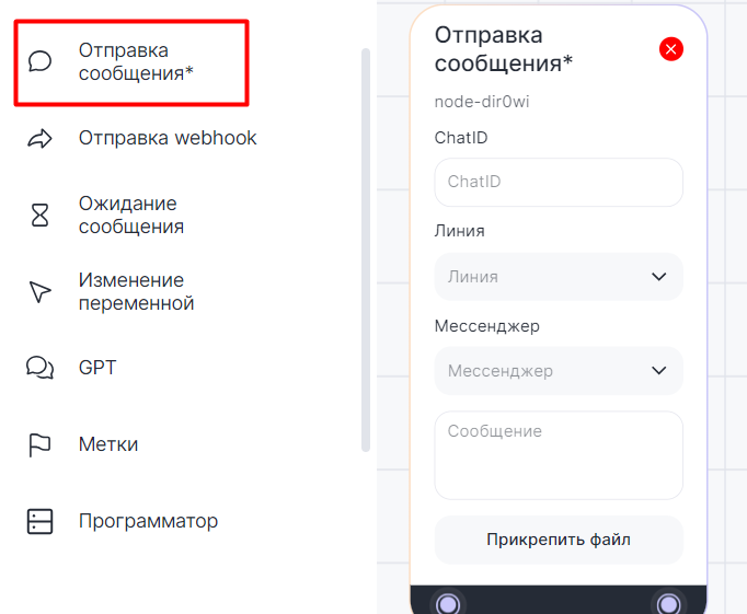 Важно: блоки «Отправка сообщения*» и «Отправка сообщения» можно использовать в сценарии одновременно.