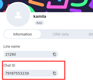 Его можно взять, например, из чата Dialogs.Pro. Для этого нажмите на иконку собеседника в нужном диалоге и скопируйте «Chat ID».