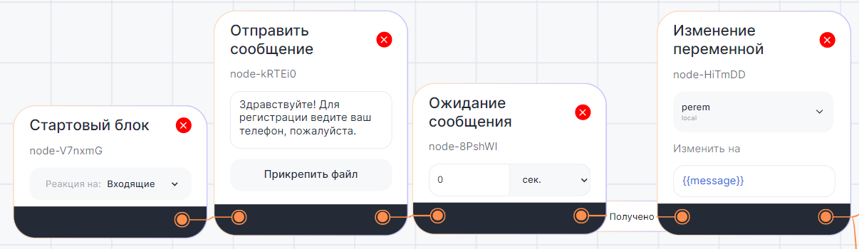 2. Номер телефона записывается в переменную {{perem}}.