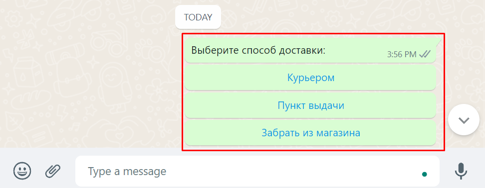 2. В WhatsApp одним сообщением можно отправить только 3 кнопки. Если добавить больше кнопок в сообщение, оно разделится на несколько: