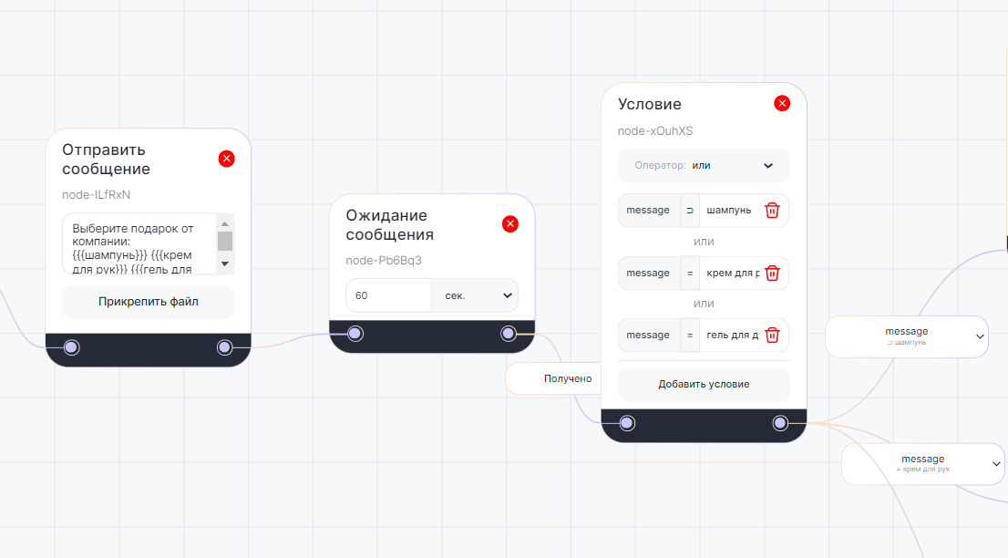 3. Проверит вариант ответа, после чего направит сценарий по нужной ветке.