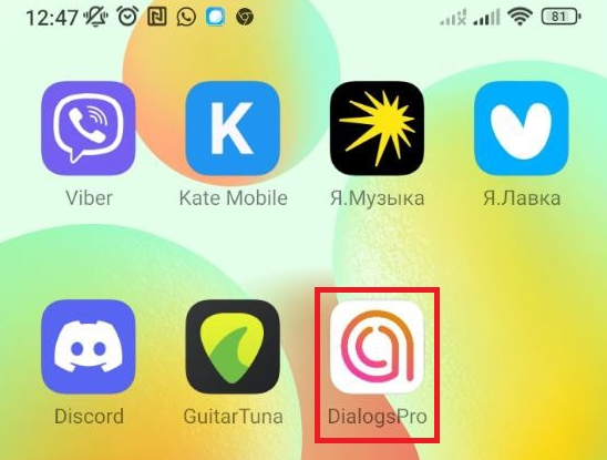 - Теперь на главном экране появится иконка ChatApp Dialogs.