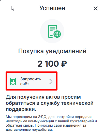 После оплаты линии ChatApp по Счету или с кошелька компании можно получить закрывающие документы по электронному документообороту.