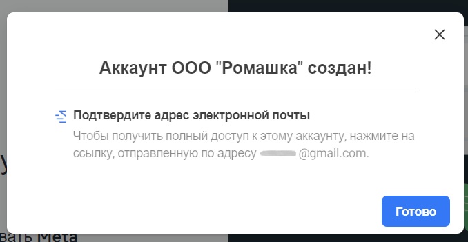 3. После отправки появится сообщение, что аккаунт создан и нужно подтвердить адрес электронной почты.